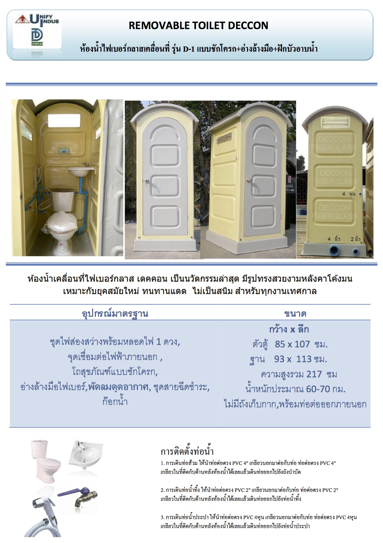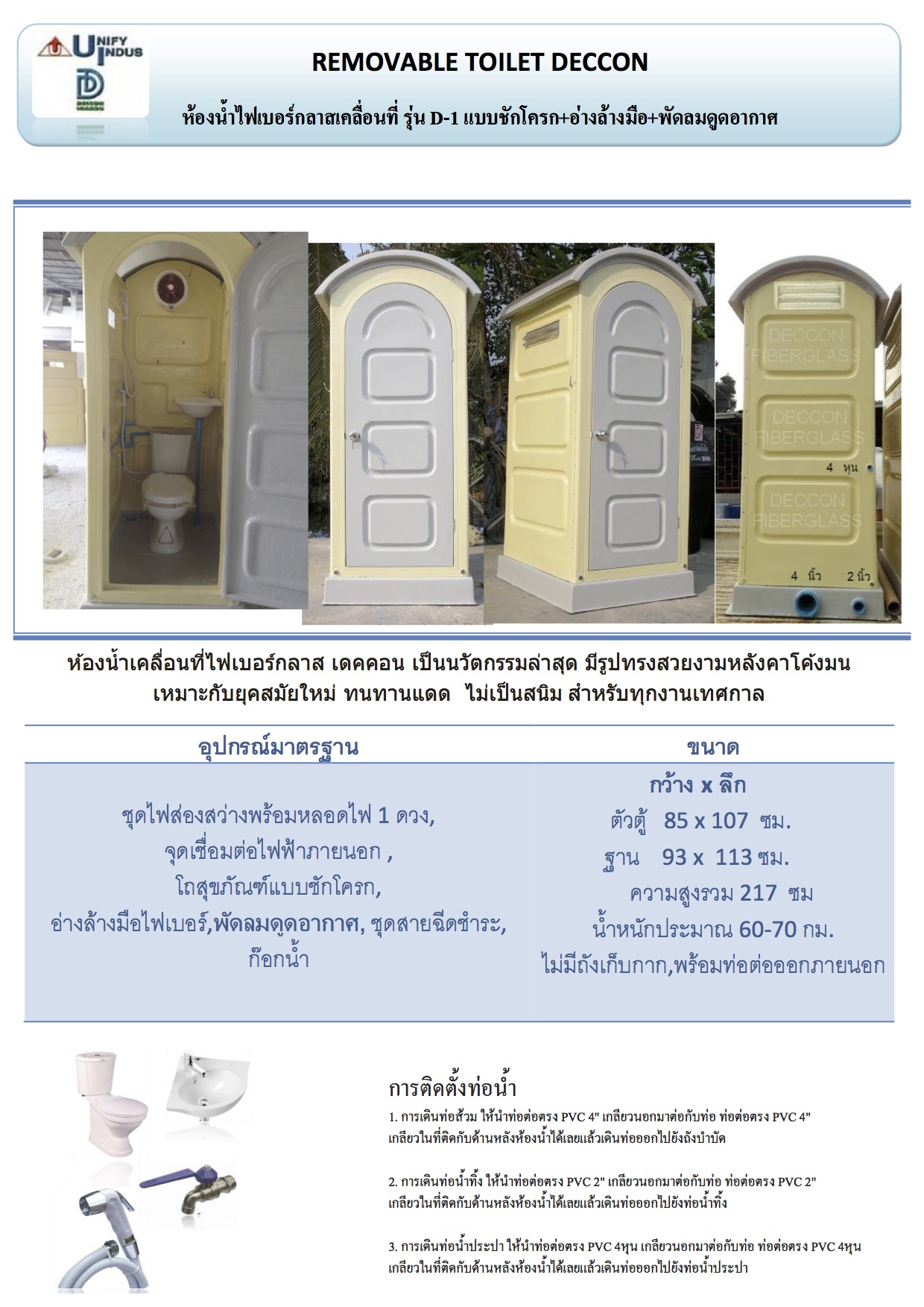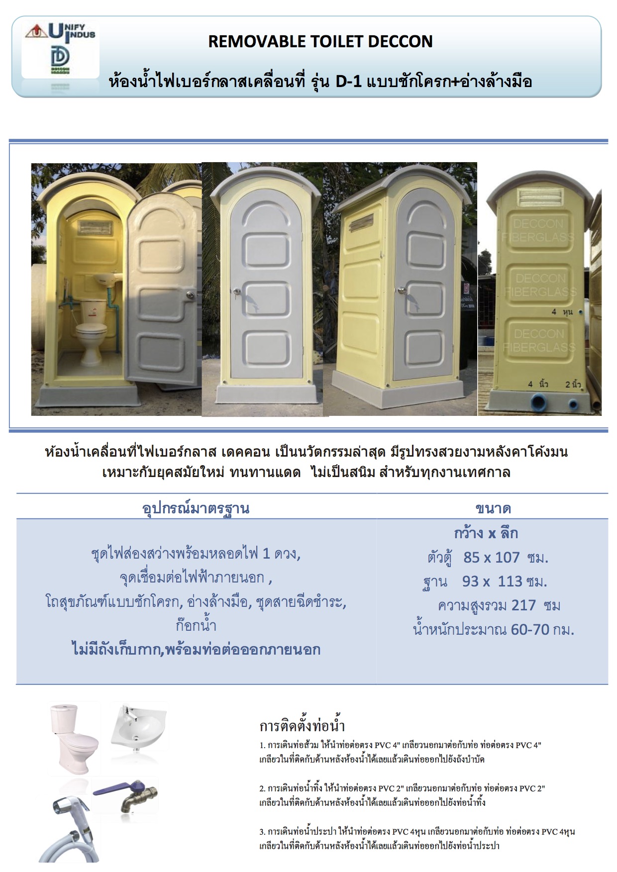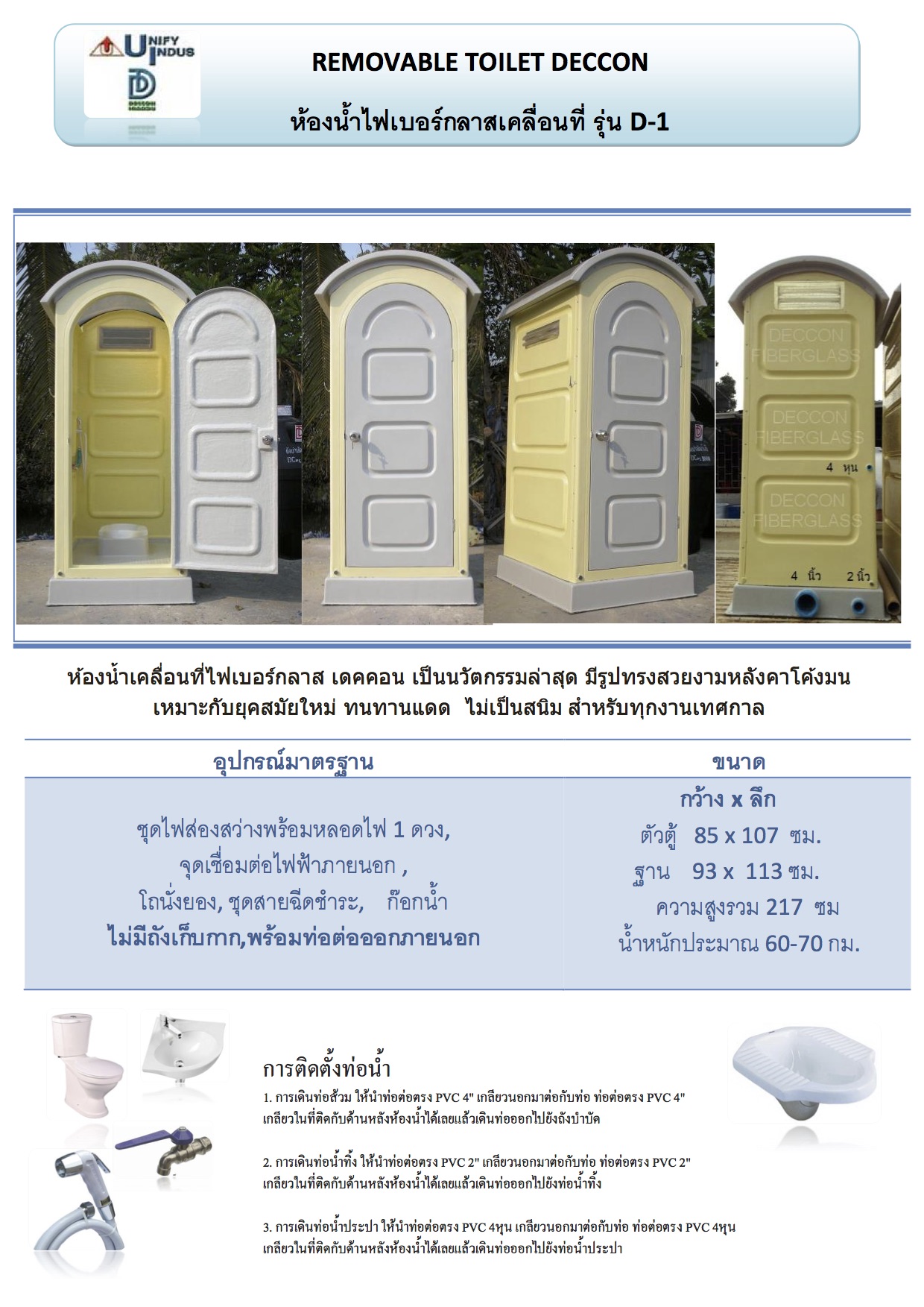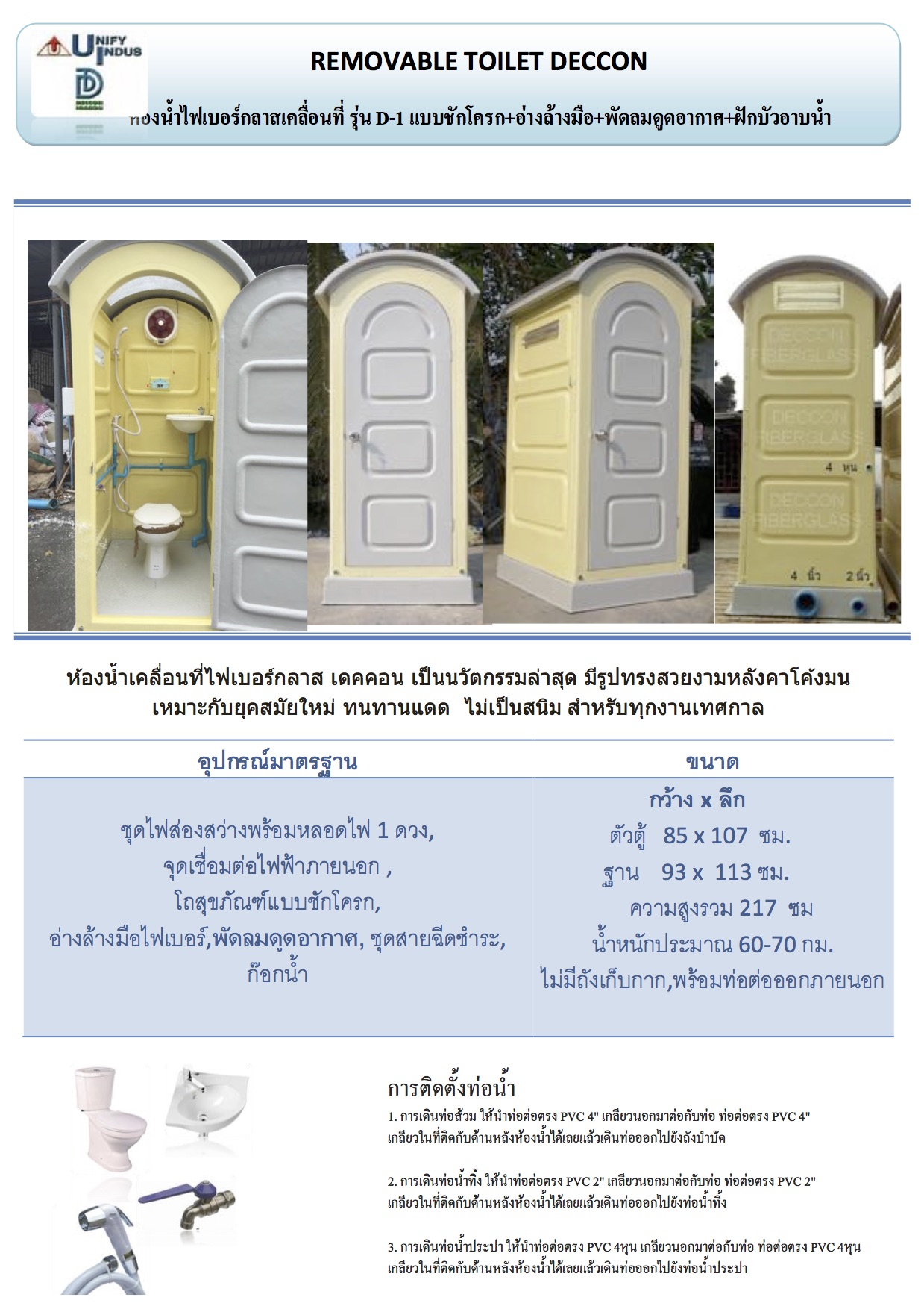 รายละเอียดผลิตภัณฑ์ ห้องอาบน้ำสำเร็จรูปเคลื่อนที่ รุ่น D-4