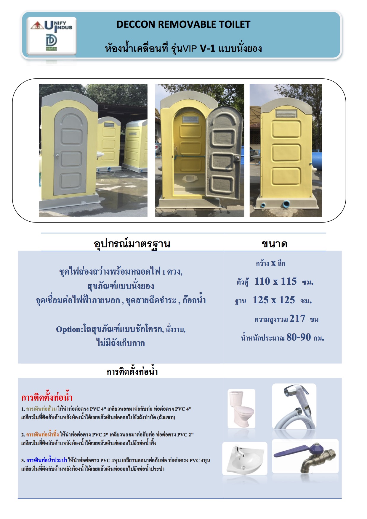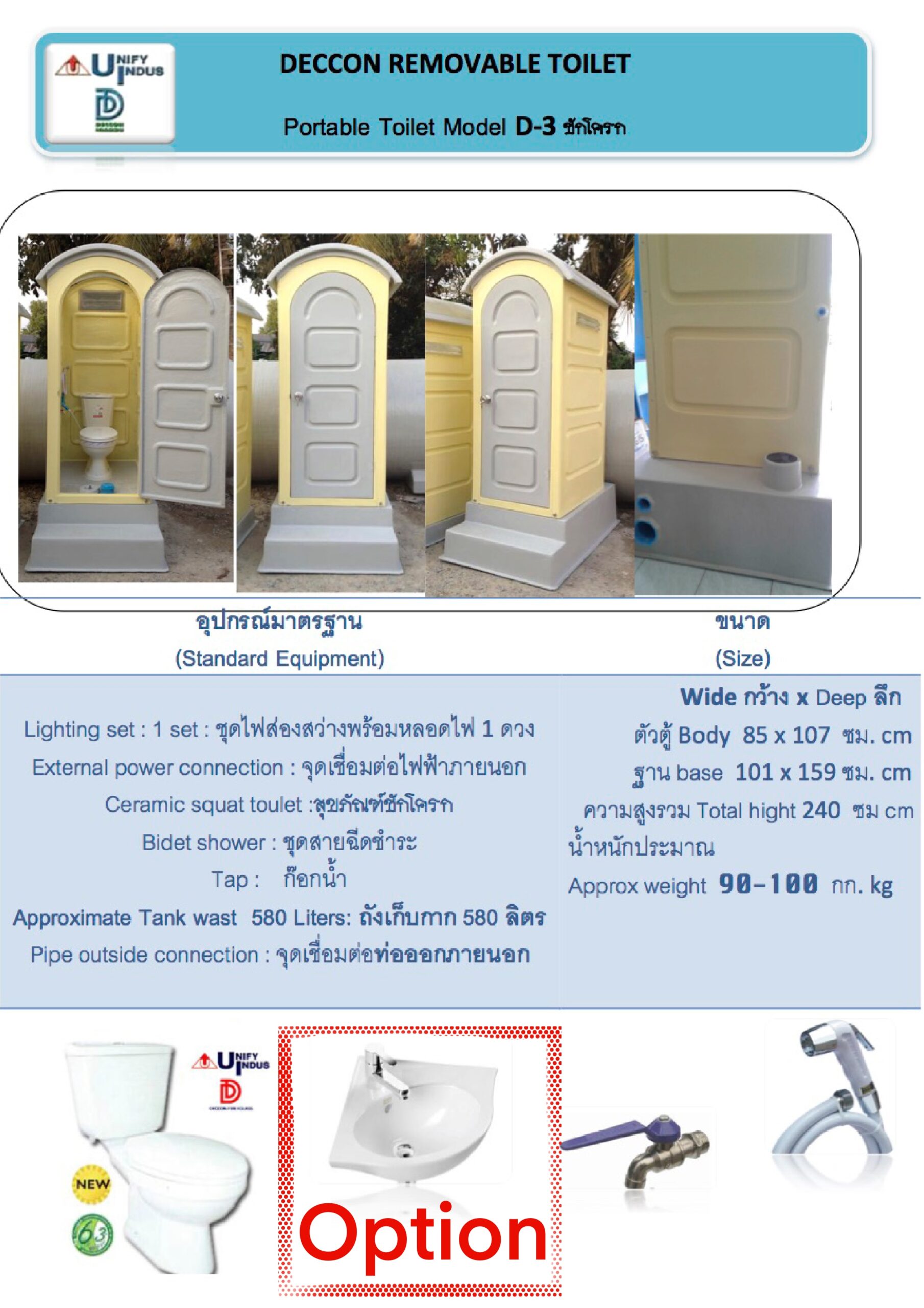 อุปกรณ์เพิ่มเติม Option : อ่างล้างมือ,พัดลมดูดอากาศ, ที่วางสบู่, ขอแหวนผ้า