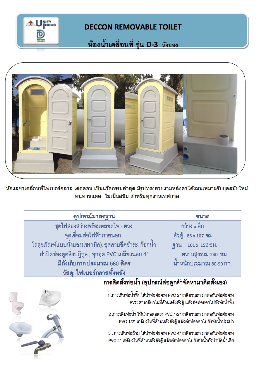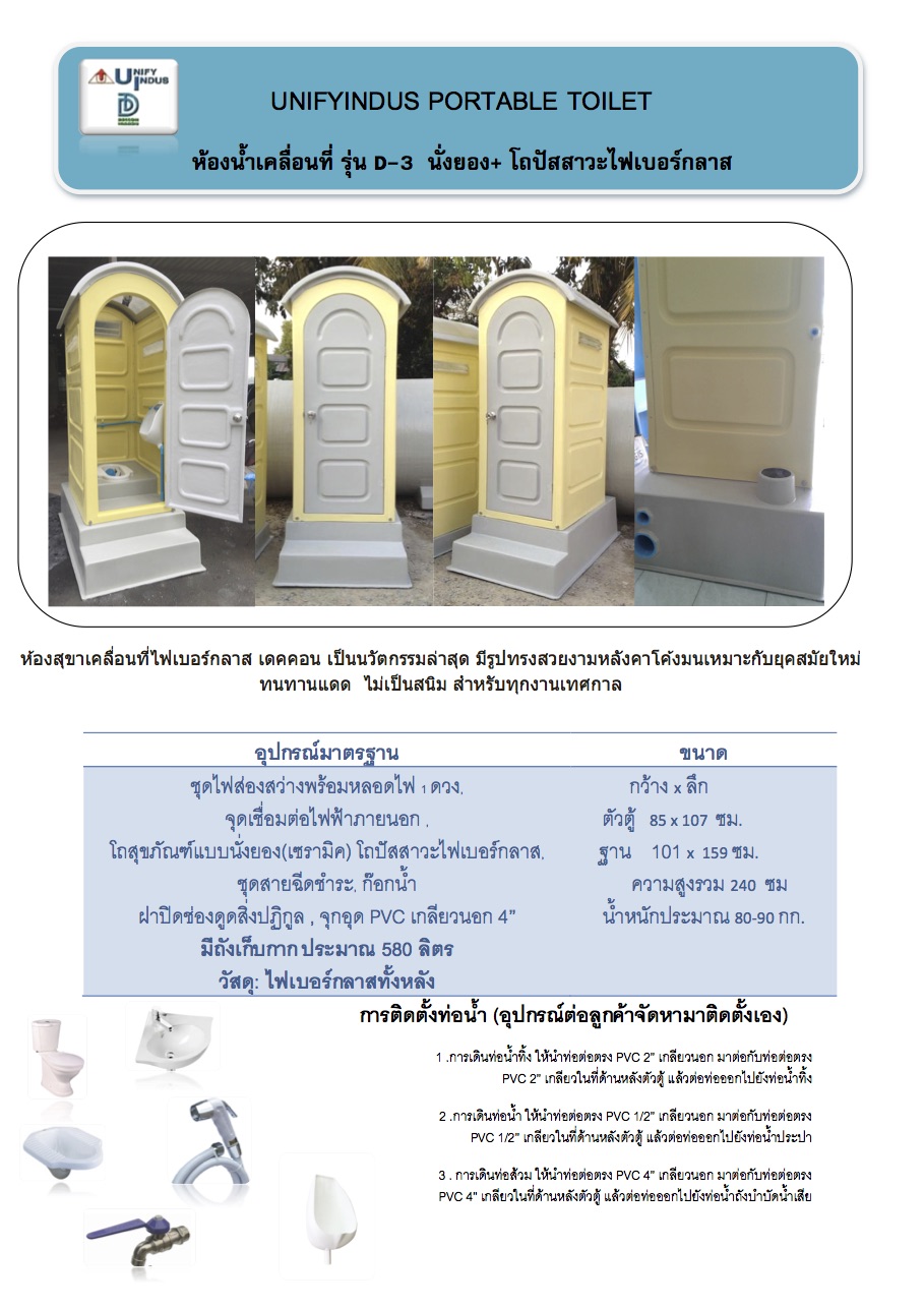 ห้องน้ำเคลื่อนที่ไฟเบอร์กลาสฐานสูง รุ่น D-3