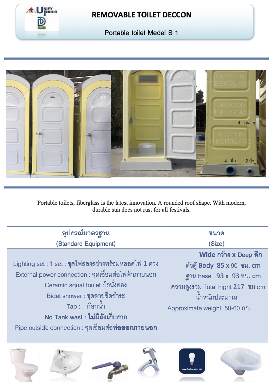 เสปกและขนาดห้องน้ำเคลื่อนที่สำเร็จรูปไฟเบอร์กลาส